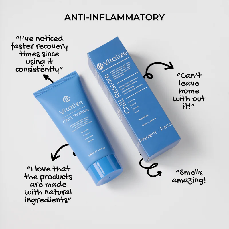 Apply Chill Restore immediately after exercise or intense physical activity to enhance recovery and reduce inflammation. Designed to be used during post-exercise stretching, it helps cool the muscles, limit swelling, and accelerate healing.
